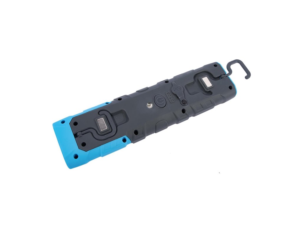 Robustní montážní nabíjecí svítilna s magnety, háčkem a kloubem. Pogumovaný povrch zajišťuje pohodlnou manipulaci. Hlavní světlo doplňuje praktická horní LED dioda pro přímý svit. Nabíjecí port USB-C. USB kabel je součástí balení. Doporučená nabíječka: 5 V/2 A